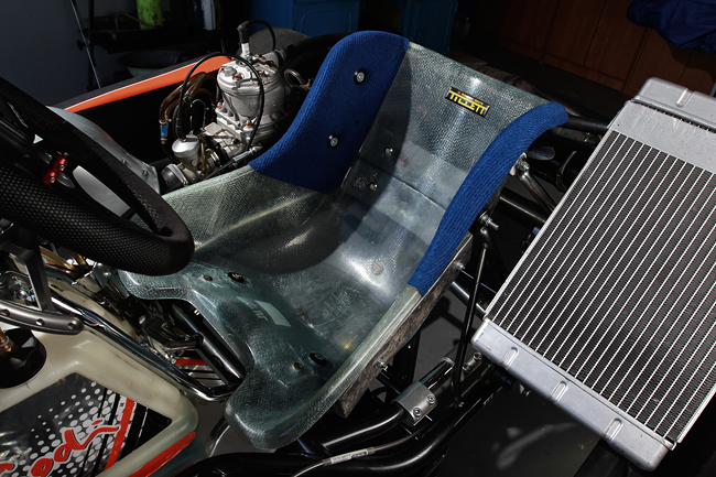 Прошла ещё пара-тройка недель, и карт я чувствовал каждой клеточкой. В принципе было бы сложно не постичь это состояние, ведь пятая точка опоры находится в одной плоскости с рамой, что позволяет интуитивно понять, куда едет карт, а кресло выполнено из жёсткого стеклопластика и не имеет никаких мягких подушек, что помогает ещё быстрее установить связь с машиной. У современного карта сиденье не изменилось, разве что может быть оклеено покрытием, напоминающим ковролин.