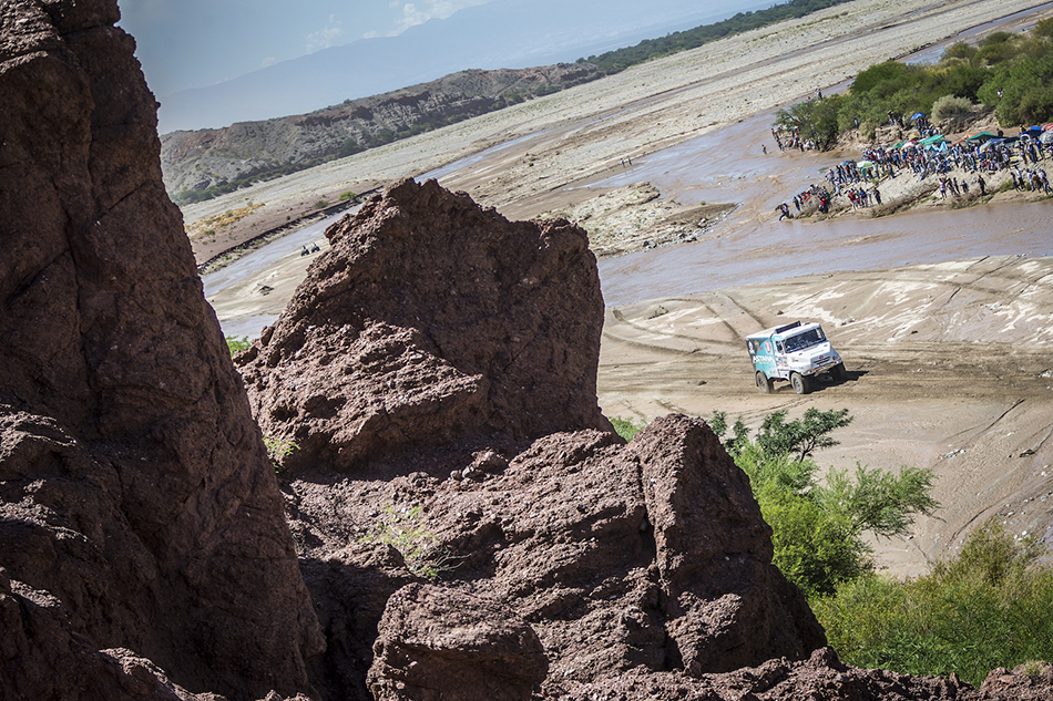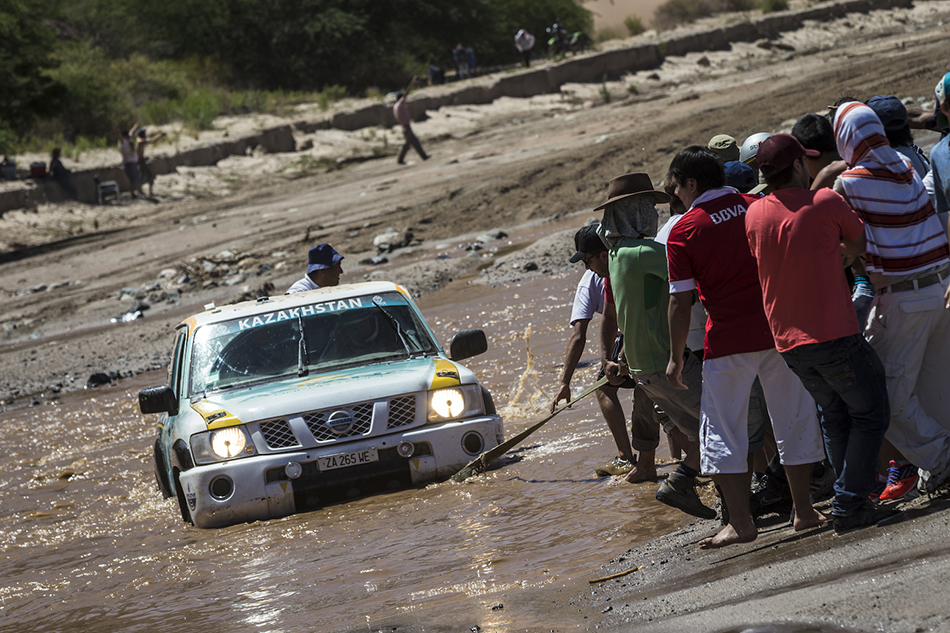 В то время как мотоциклисты и квадроциклисты соревновались на территории Чили, автомобили и грузовики нарезали ещё один круг по аргентинской земле. Восьмой этап — один из самых длинных (533 км) и к тому же самый высокогорный. Старт даётся на отметке 3 500 м, а наивысшая точка — перевал высотой 4 100 м (на такой высоте даже летом лежит снег). К тому же два дня лил дождь, так что участники сполна хлебнули счастья в виде не указанных в дорожных книгах промоин и скользкой глины. Досталось и нашим.