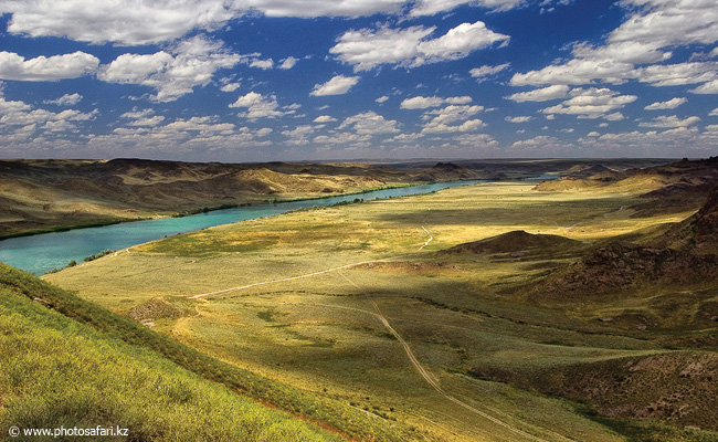 Дальше дорога идёт вдоль реки Или на расстоянии примерно 3-5 км. Дорога асфальтированная, но очень много ям, так что будьте аккуратны.