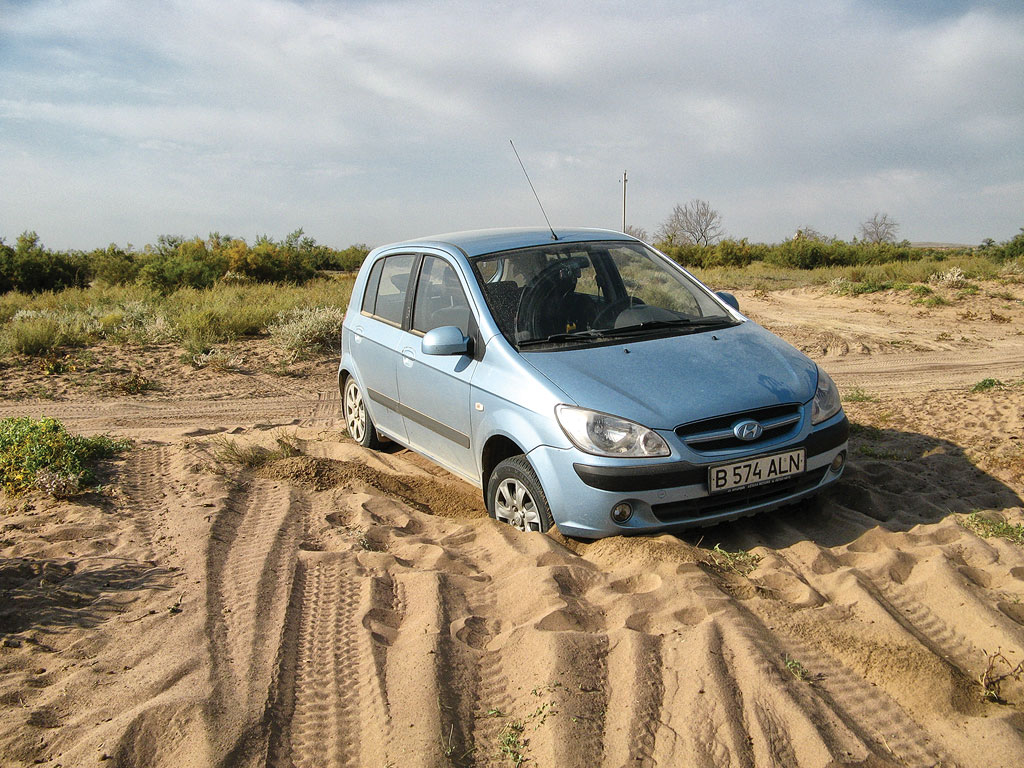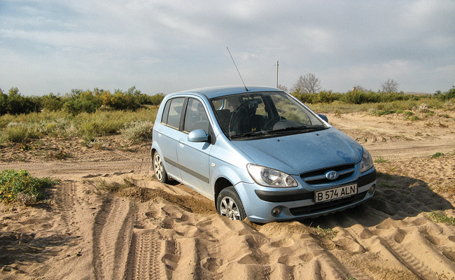 98 км (440 11.050′ с. ш. 760 53.062′ в. д.) — асфальт заканчивается. В этом месте от основной дороги уходит несколько укатанных грунтовок. Можно свернуть на одну из них и ехать в сторону села Казахстан, этим вы сократите несколько километров пути. Но есть риск выбрать неправильное направление и попасть совсем не туда, куда хотелось. Поэтому лучше ехать дальше по основной дороге. Кстати, имейте в виду, что качество дороги плохое, поэтому лучше ехать на полноприводном автомобиле.