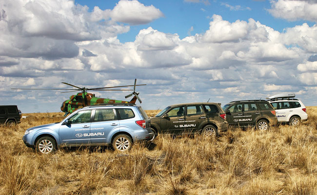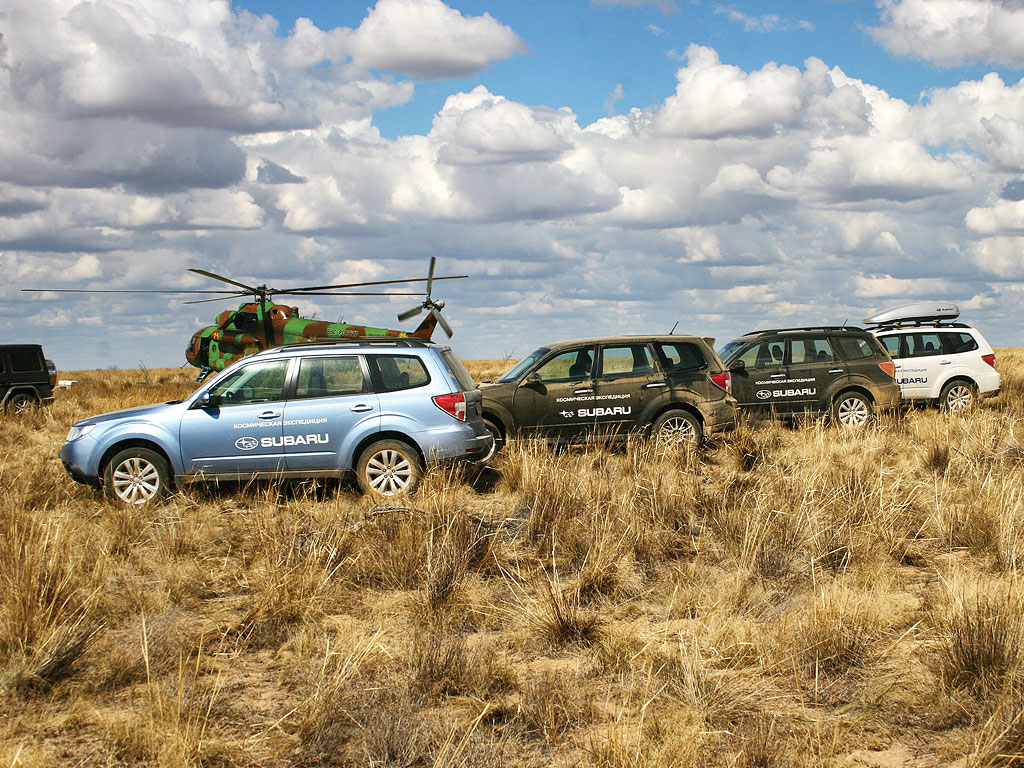 Subaru — японская марка автомобилей, среди всех наиболее близкая к космосу. В японском языке слово «субару» означает звёздное скопление Плеяд в созвездии Тельца. А в этот раз Subaru прикоснулась к космосу не только названием, но и, так сказать, тактильно — напрямую. А именно небольшая колонна из пяти автомобилей Subaru Forester 2011 модельного года должна была преодолеть чуть более тысячи километров казахстанских просторов, чтобы попасть на место посадки спускаемого аппарата с экипажем МКС на борту и встретить людей из космоса.