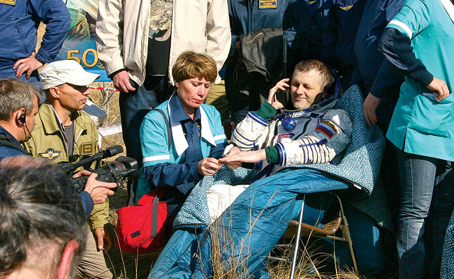 10:16. Первый космонавт — Александр Самокутяев — вызволен из аппарата. Началась работа медиков.
