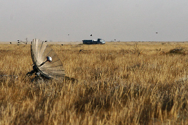 Путь от Алматы до Караганды не представлял ничего интересного: сел в самолёт, провёл в нём чуть больше часа — и вот я выхожу из здания карагандинского аэропорта. Недлинная дорога от аэропорта до города, поиск нужной гостиницы, размещение. Вот и все воспоминания о пути. Интересное началось на следующий день. Во дворе гостиницы стояло пять автомобилей Subaru Forester со скромными наклейками «Космическая экспедиция», на которых я совместно с российскими коллегами отправлюсь в предполагаемый квадрат посадки спускаемой капсулы.