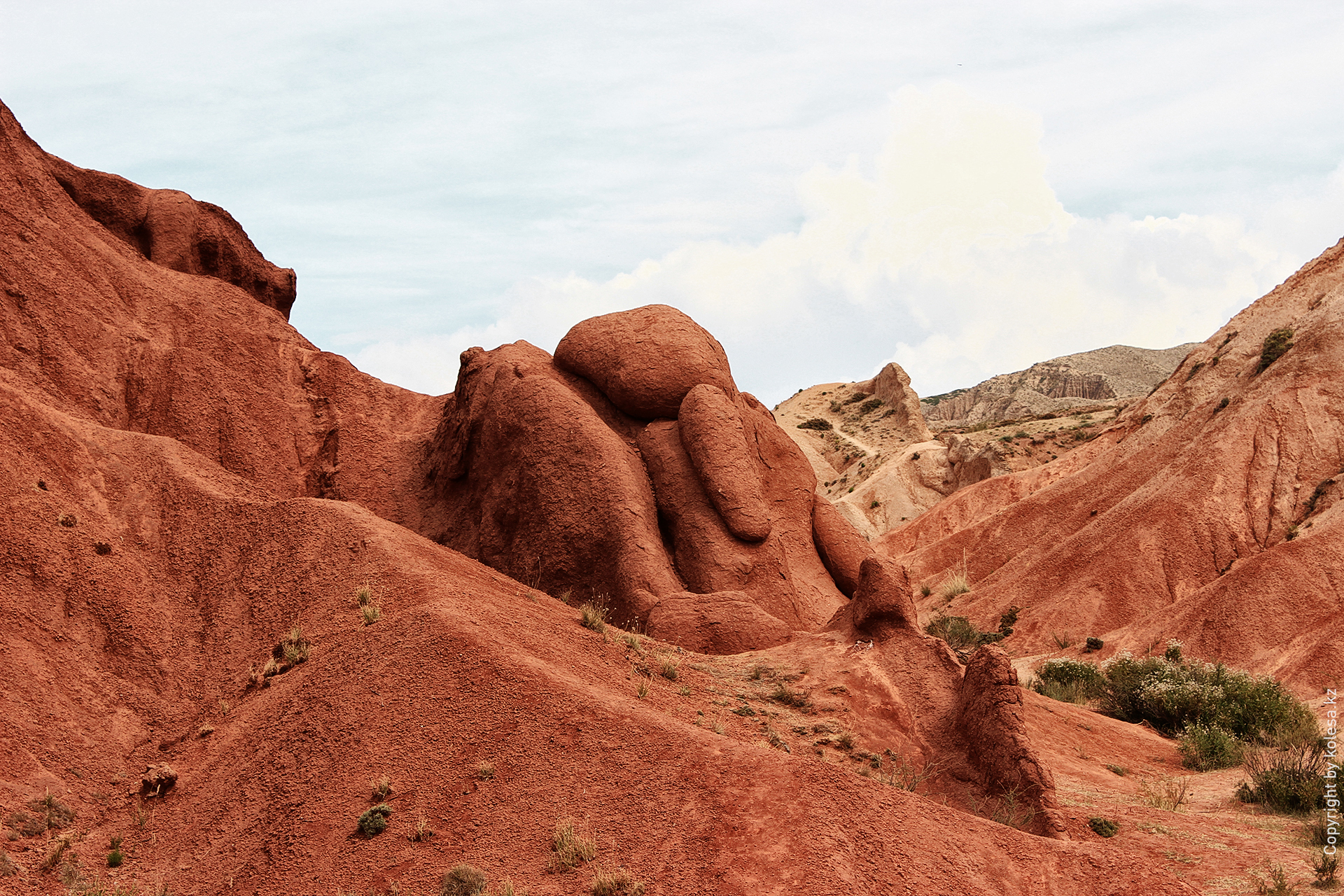 До каньона Сказка от Чолпон-Аты 205 км, но ехать уже не через Каракол, как в предыдущих маршрутах, а через Балыкчи — так ближе. Съезд с дороги к каньону находится за селом Каджи-Сай. Главный ориентир — указатель «Сказка каньон». И, на всякий случай, координаты поворота: 420 10.377` с. ш., 770 21.322` в. д.