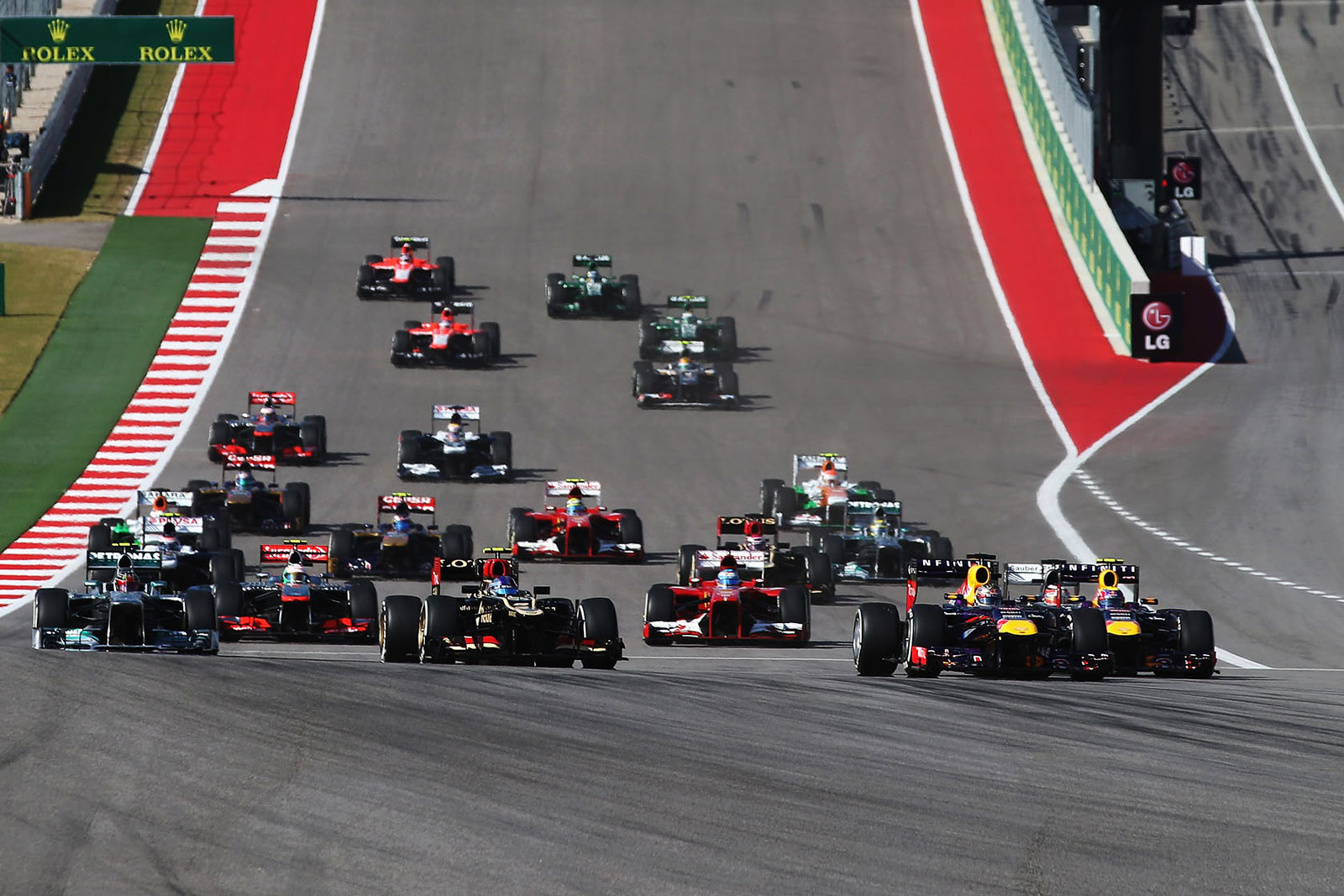 В Остине ситуация усугубилась ещё и консервативным выбором шинников Pirelli, которые привезли в США два самых жёстких состава резины: Hard и Medium. В этой ситуации большинство избрало тактику одного пит-стопа, а пилоты были вынуждены всеми силами экономить шины по ходу гонки. Большинство же обгонов на трассе совершалось исключительно за счёт системы DRS. Разумеется, это не то блюдо, которое хотелось бы гурманам-болельщикам. Будем надеяться, что в Бразилии участники будут уже не столь сильно озабочены турнирными задачами и смогут от души развлечь публику.