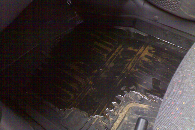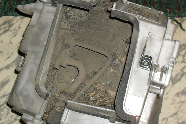 Существует ещё одна причина появления неприятного запаха в салоне, так или иначе связанная с кондиционером, — забита дренажная трубка для слива конденсата. В этом случае вода просто-напросто не стекает на улицу, а оказывается в салоне, точнее в ногах у пассажира, под ковром. Отсюда и запах. Как чистить дренаж, решать вам, но мы рекомендуем сжатый воздух, но не под большим давлением. Есть риск её отсоединения от печки. Поставить трубку на место может быть очень сложно.