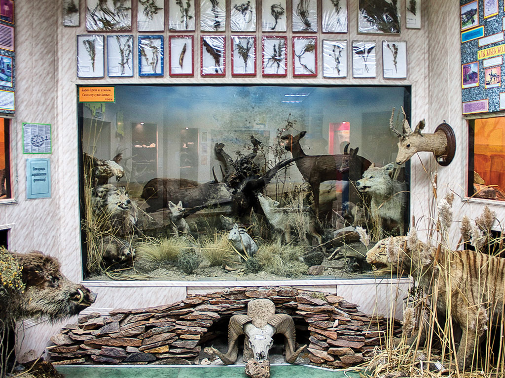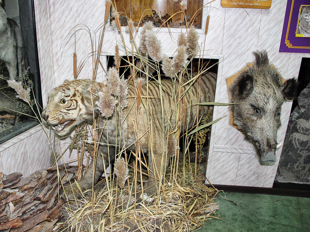 Чучело туранского тигра в местном краеведческом музее — одно из немногих сохранившихся в мире