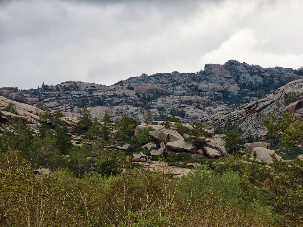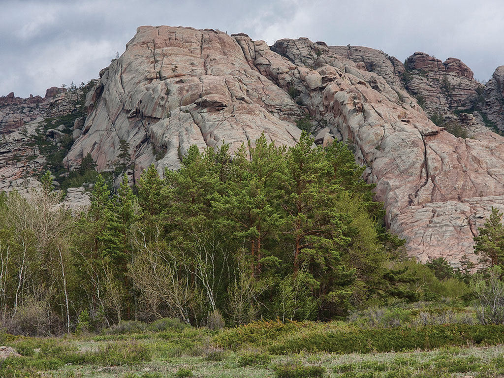 Структура Кызыларая сходна с Бектау-Ата. Только скалы покрыты лесом