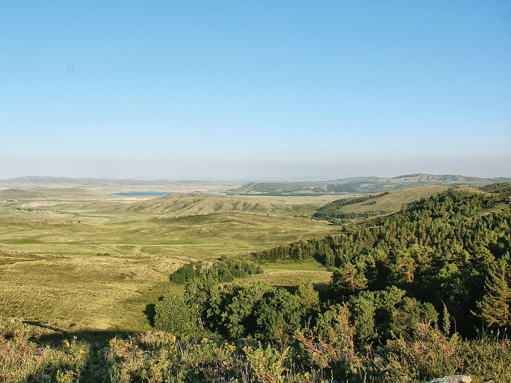 Среднегорье Центрального Казахстана (высшая точка гора Аксоран — 1 565 м — расположена в горном массиве Кызыларай) называется Сары-Арка или Казахский мелкосопочник. Это одна из самых древних и больших горных систем нашей планеты. Её протяжённость с запада на восток 1 200 км, с севера на юг 600 км. Древние называли эти горы Скифскими. Горные хребты Казахского мелкосопочника не образуют сплошного горного массива, их отделяют друг от друга большие пространства почти плоских равнин. Поэтому изолированные пустыней горные массивы Казахского мелкосопочника называют горно-лесными оазисами.