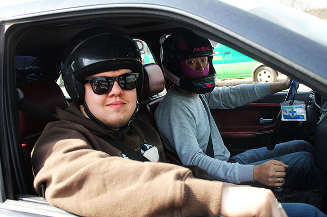 Единственное, что в этом году в обязательном порядке, — на СУ стали заставлять надевать шлемы. Тем, у кого их не было (понятное дело, любители ведь собрались, откуда у нас дорогостоящие гермаки?), судьи выдавали казённые. А вот между спецучастками на доездке всё как в настоящем ралли: нужно не заплутать по дороге к точке и вовремя приехать на пункт контроля (КВ). Вот тут и нужен штурман больше всего, чтобы подсказать, когда нужно повернуть направо, а где можно проехать прямо. Кроме того, напарнику приходится решать задачки из школьной программы типа за сколько автомобиль доберётся из точки А в точку Б, если дано… — каждому экипажу прописано своё время прохождения контроля времени. И мы должны прибыть к судье КВ минута в минуту.