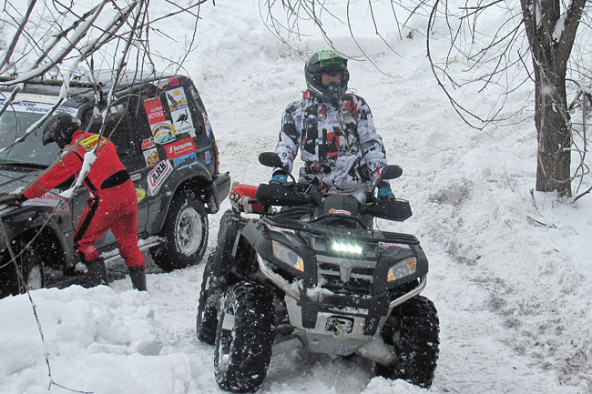 Кому на самом деле пришлось несладко, так это участникам на ATV. Если полноприводным квадроциклам хоть и с трудом, но удавалось передвигаться по глубокому для их клиренса снегу, то моноприводы являли собой печальное зрелище. Они даже с горки могли ехать только по чужой колее. Первое место в классе ATV занял Максим Антимиров, второе — Иван Елизаров, третье — Вячеслав Муравьёв.