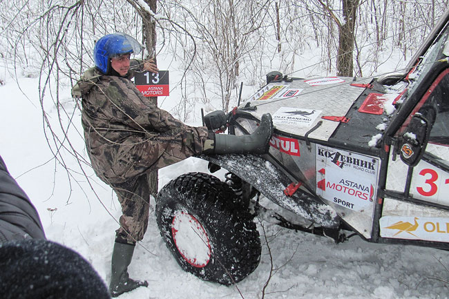 Вторая фишка — это сезон. Даже не сезон, а межсезонье, или переходный период. Те несколько дней между зимой и весной, когда земля пропитана талой водой и скользкая, как банановая кожура. В этом году погода традиции нарушила. Устойчивый «минус», на равнинах лежал снег глубиной до 40 см. «Это они с севера привезли» — шутили в адрес участников из Караганды и Астаны.