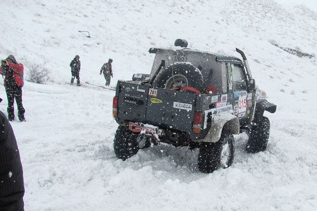 Победителей в классе ТР-3 трудно идентифицировать по территориальному признаку. На первом месте экипаж Олега Манохина (Караганда) и Дениса Коломацкого (Алматы), выступавший на MMC Pajero, недалеко ушедшем от стандартного состояния. Второе место заняли Руслан Ахмудов и Николай Папин на TLC 70 с алматинскими номерами. Третье — Геннадий Скорик и Серик Токалов на прадике с мостами от «Лапландера». Несмотря на неказистый вид доработок, машина на удивление уверенно идёт по снежному насту.