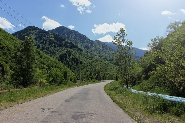 54.9 км — пост, где надо заплатить 370 тенге с человека за проезд в Иле-Алатауский государственный национальный природный парк.