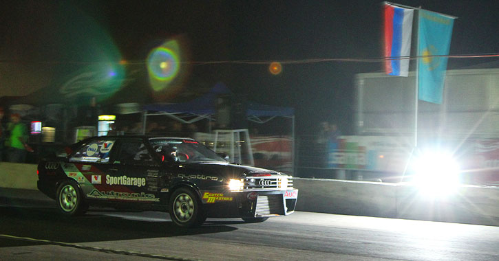 Но мнение о третьем этапе сложилось весьма неплохое, да и зарождение некой традиции (это я про гонку с российскими пилотами) весьма положительный шаг в развитии дрэга в Казахстане. Могу точно сказать, что не совсем понятно было, по какой схеме в этот раз пилоты гоняли. Отсутствие информации от ведущих по положению пилотов в общей классификации вносило состояние неопределённости. И после того как я окончательно запутался в том, кто будет с кем гонять, плюнул на все эти расчёты и стал просто смотреть гонку. Собственно, для меня секунды, за которые проходят пилоты 402 метра асфальтового полотна, важнее понятия «кто кого». Вот результат. К примеру, на этом этапе у Антона Ли лучшее время 10.21 секунды (приведено грязное время с учётом времени реакции). Конечно, у него бывало и получше, но что есть, то есть. Андрей Кулемзин на BMW оказался медленнее Антона на какую-то долю секунды — 10.22. Или взять особо полюбившегося пилота из Новосибирска на Subaru Forester Дмитрия Мандрикова, у которого лучшее время зафиксировано на отметке 10.5 секунды. Но, к слову, именно столь сурово и решался победитель — по системе «каждый с каждым».