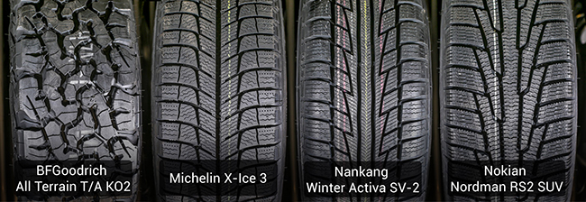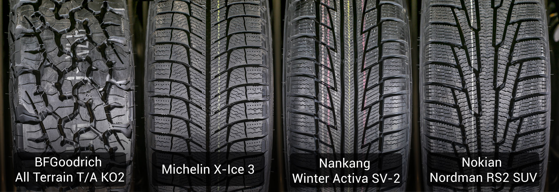 Среди участников теста есть два комплекта, которые не совсем подходят для среднестатистической казахстанской зимы. Первый — всесезонная BFGoodrich All Terrain T/A. Казахстанцы нередко используют внедорожные шины круглый год. Но будет ли работать такой комплект, когда под колёсами снег и лёд? Посмотрим! Второй — «странный» соперник — китайская Nankang Winter Activa SV-2. Производителем позиционируется как зимняя, но резина протектора настолько жёсткая, что больше напоминает летнюю. Как себя покажет компаунд из Поднебесной в мороз на снегу и льду?