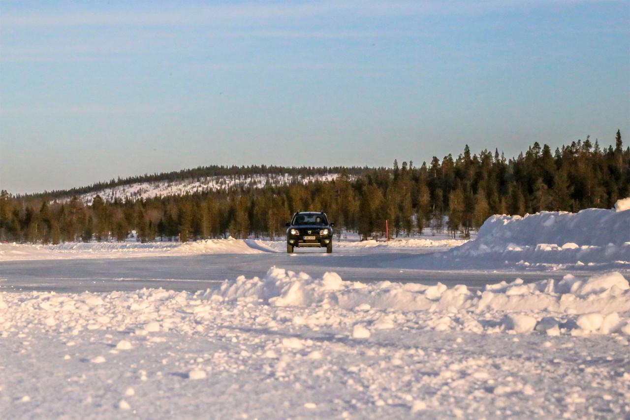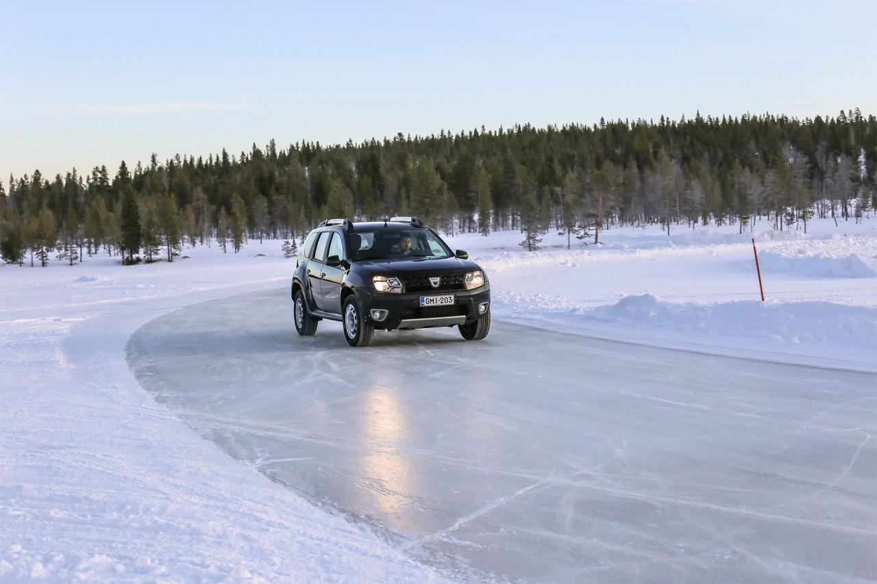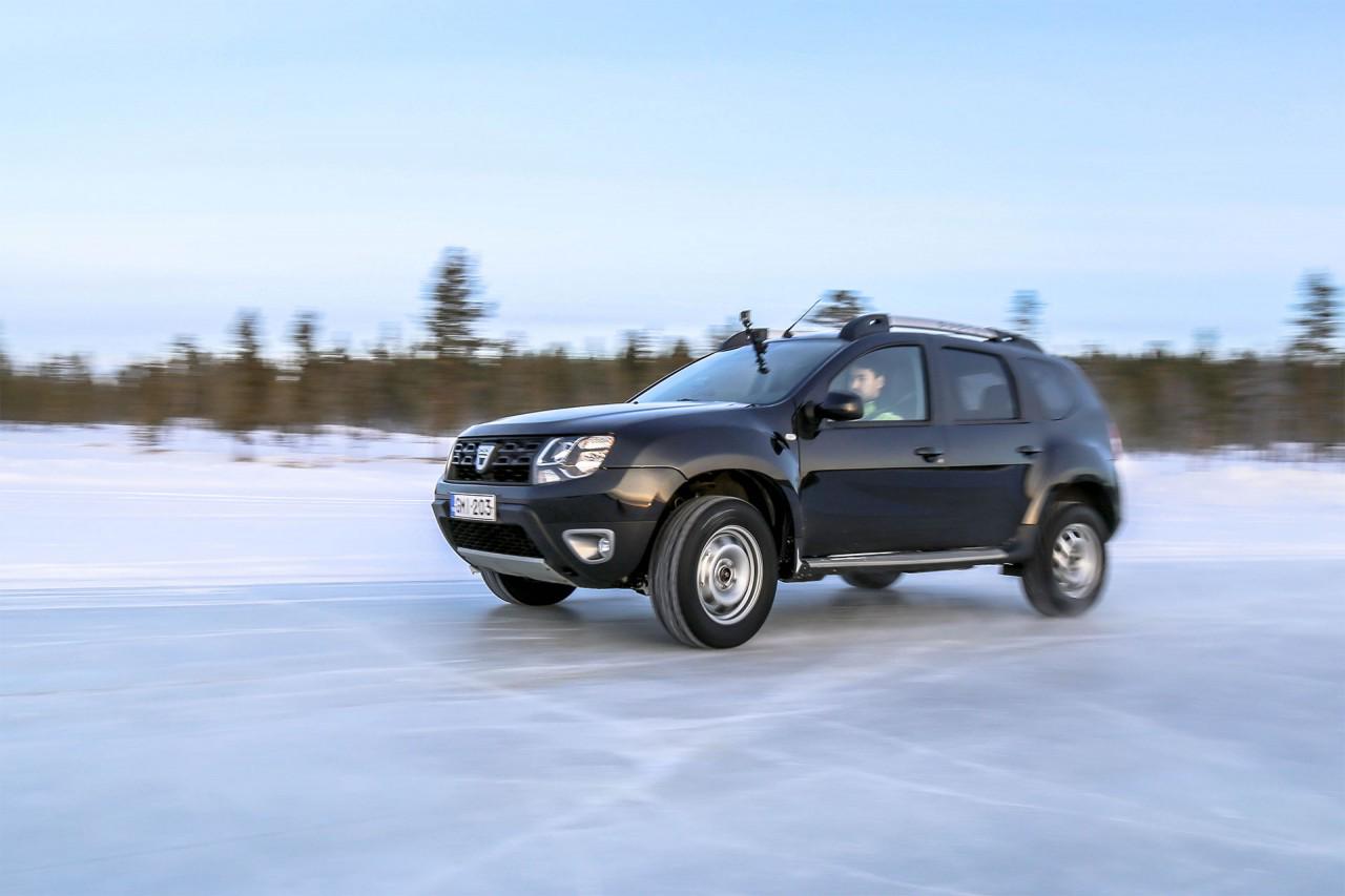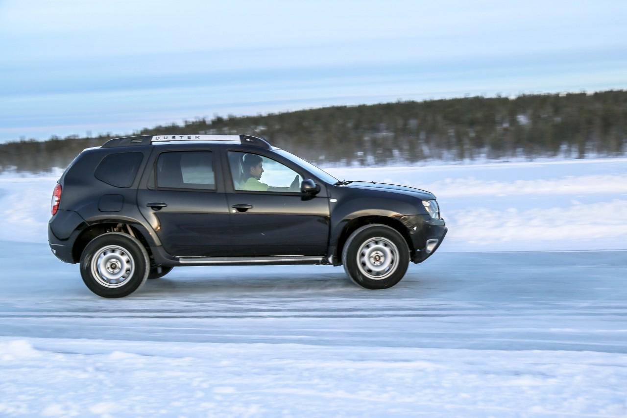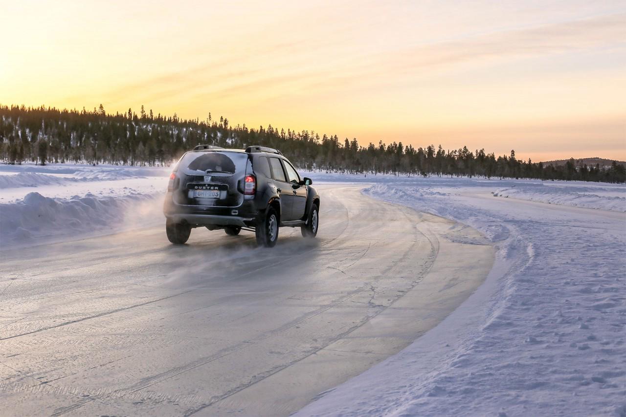Лёд — покрытие, где разница между шиповкой, фрикционной резиной и всесезонкой проявляется ярче всего. Атэшка BFGoodrich ожидаемо самая медленная на разгон. Шина беспомощно скользит при торможении даже на минимальных скоростях, когда ABS отключается. «Зимний» Nankang оказался всего на полсекунды быстрее. Причём управлять машиной на китайских шинах невероятно сложно. Duster то и дело срывается в занос, очень нестабилен на торможении и постоянно требует повышенного внимания. BFGoodrich, хотя и обладает худшими сцепными свойствами, более предсказуем и даже позволяет получить какое-то удовольствие, так как на них автомобиль неплохо управляется газом.