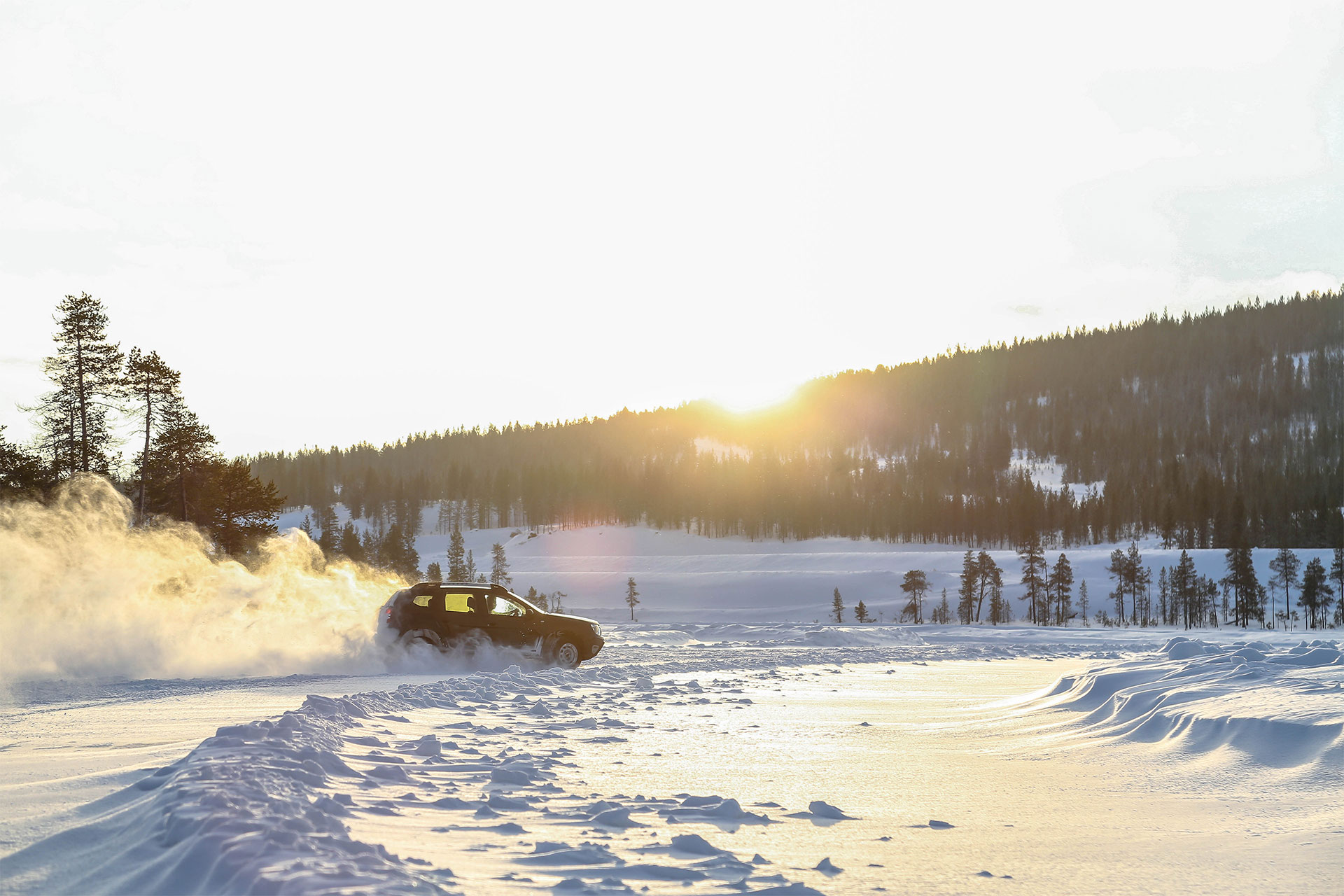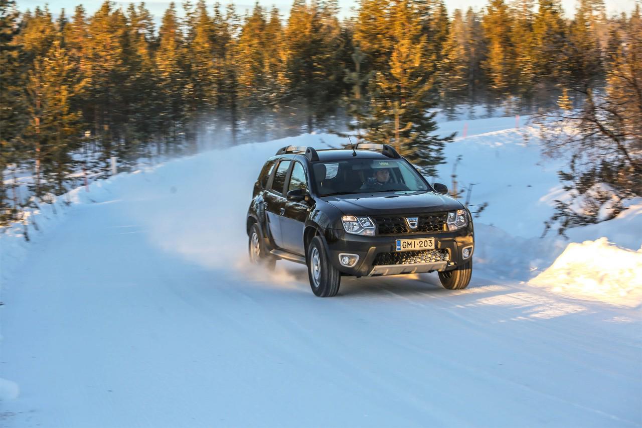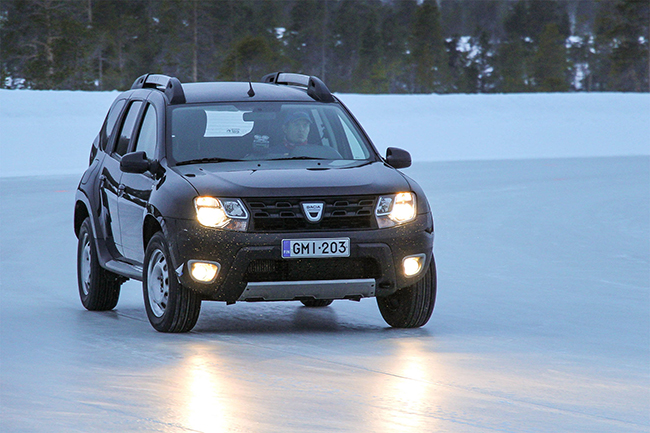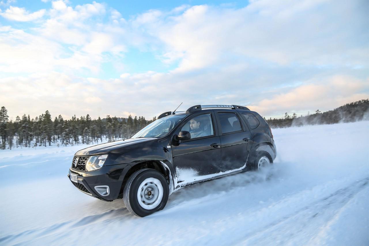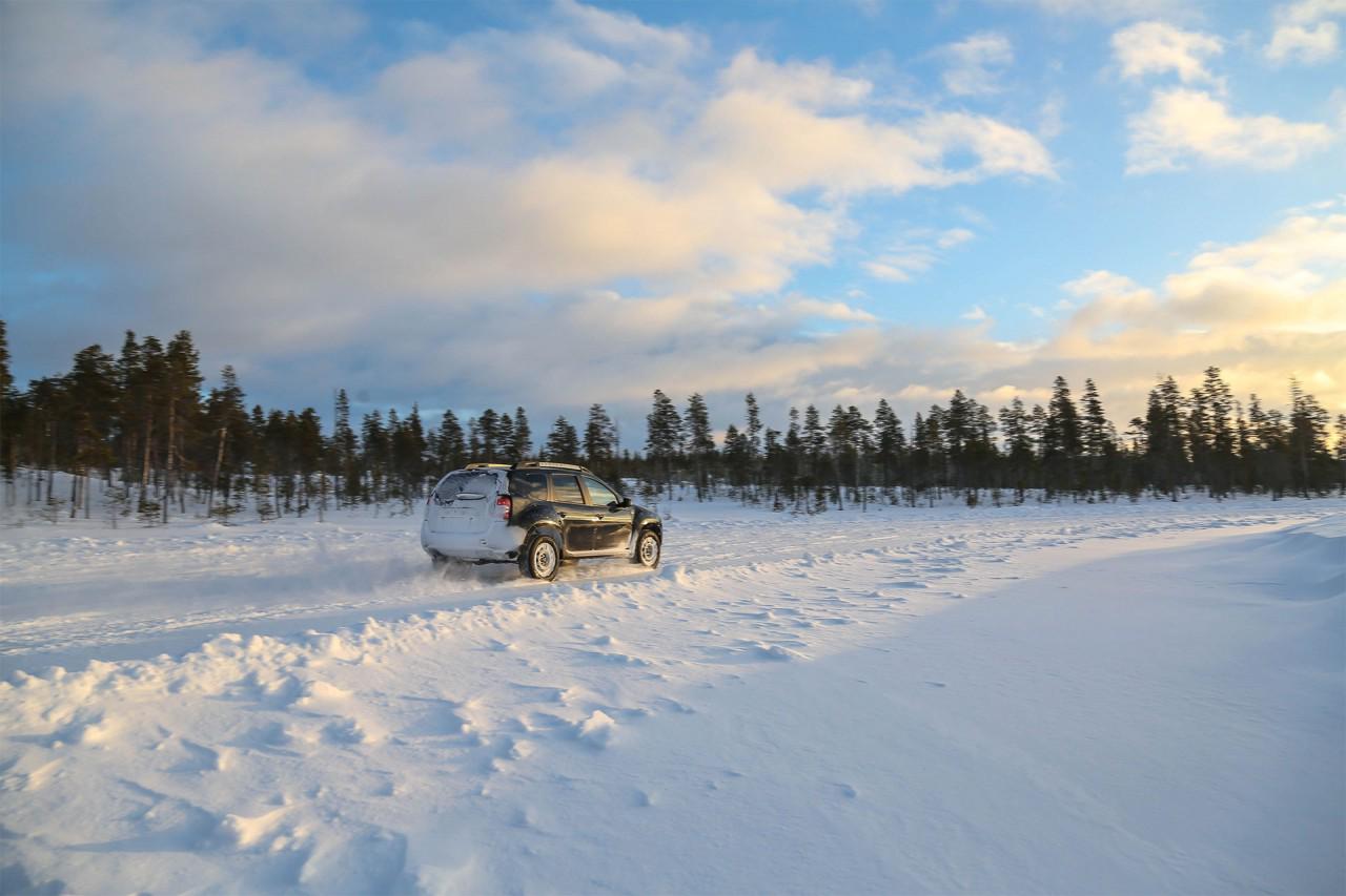 Лёд — покрытие, где разница между шиповкой, фрикционной резиной и всесезонкой проявляется ярче всего. Атэшка BFGoodrich ожидаемо самая медленная на разгон. Шина беспомощно скользит при торможении даже на минимальных скоростях, когда ABS отключается. «Зимний» Nankang оказался всего на полсекунды быстрее. Причём управлять машиной на китайских шинах невероятно сложно. Duster то и дело срывается в занос, очень нестабилен на торможении и постоянно требует повышенного внимания. BFGoodrich, хотя и обладает худшими сцепными свойствами, более предсказуем и даже позволяет получить какое-то удовольствие, так как на них автомобиль неплохо управляется газом.