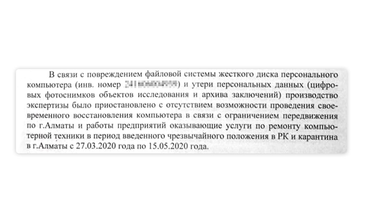 В ноябре 2019 года была назначена экспертиза, которая по весьма забавным причинам затянулась. В начале 2020 года у экспертов сломался компьютер, а починить его не смогли