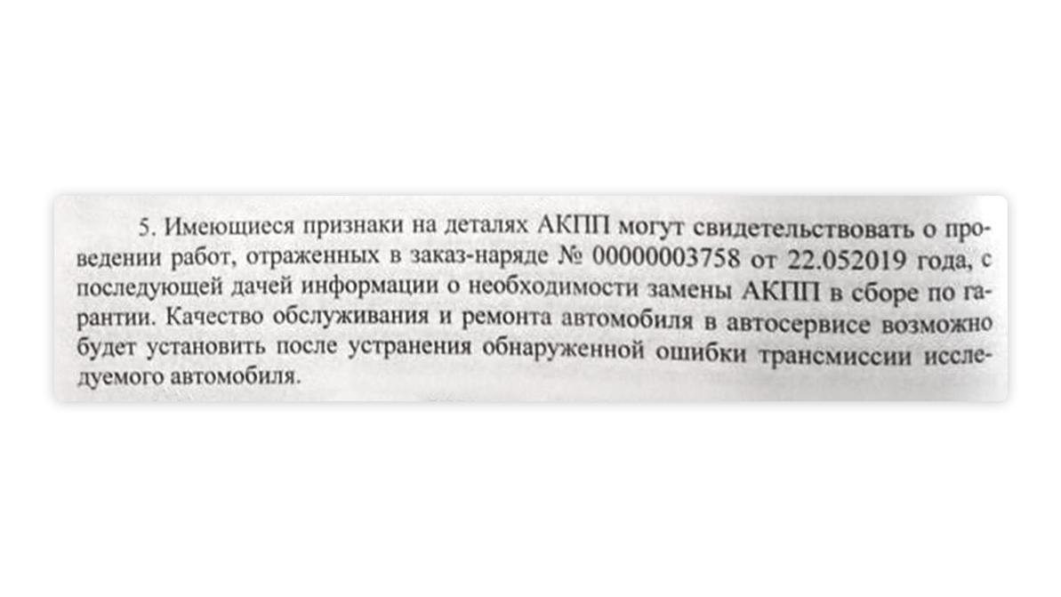 Что касается обращения в суд, то представители дилера упоминают экспертизу, якобы доказывающую, что поломка CVT не является гарантийным случаем. На основе документа в исковых требованиях владелице