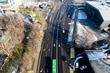 После пешеходного перехода, при движении вниз, на север, количество полос увеличивается до двух. Автобусная полоса также по краям проезжей части. Но от обилия разной разметки с непривычки рябит в глазах. Предусмотрены разворотные ряды и полосатые островки безопасности. Просто будьте внимательны!