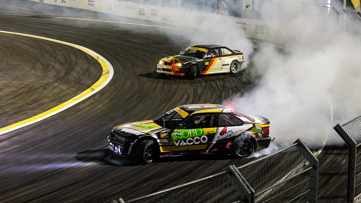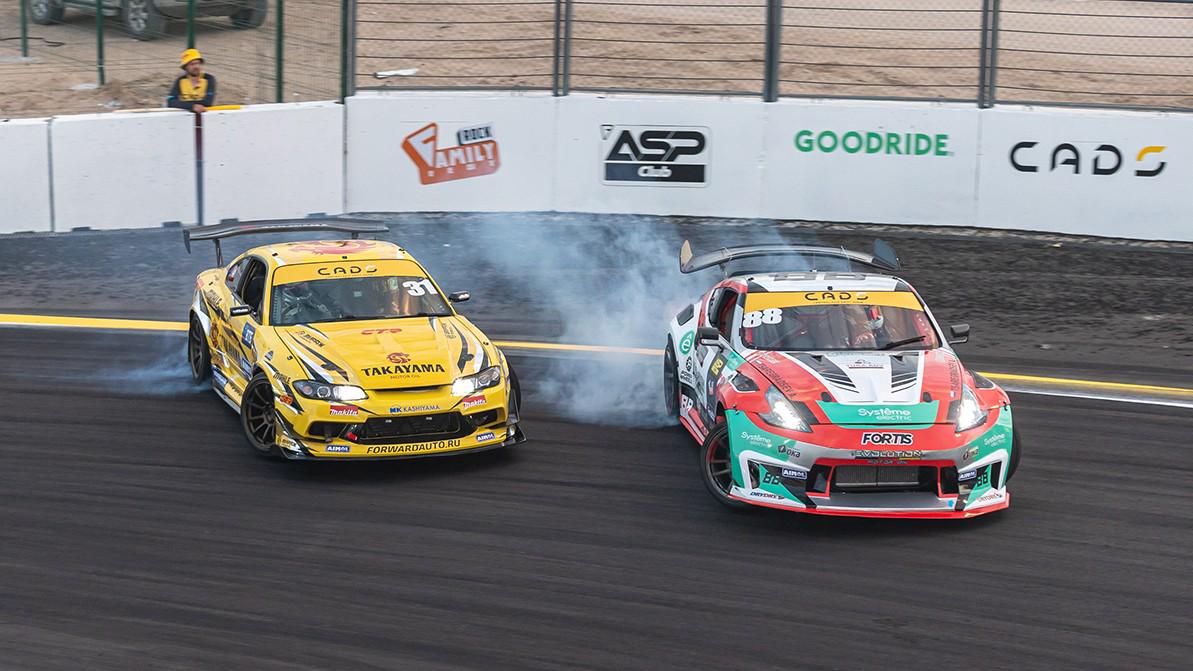 Дуэль этой пары выдалась отменной. Выявить чемпиона с первого раза судьям не удалось. Оба пилота совершили схожие ошибки в заездах лидеров, а преследователями отработали на отлично, показав близкий парный дрифт. Перезаезд получился не менее зрелищным. Во второй раз Бородин оказался чуточку сильнее и забрал первую ступень пьедестала.