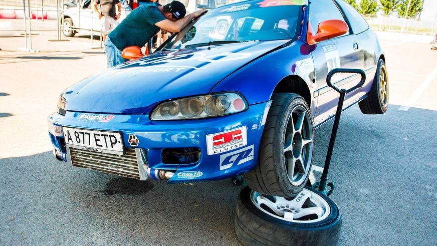 Заезды Евгения Киселёва были интересны за счёт его машины: Toyota Mark II с 2JZ-GTE на огромной турбине, доработанным автоматом и настоящими дрэговыми сликами на задней оси. Потенциал у машины колоссальный, но реализовать его пока не получилось — не хватает зацепа на площадке. Нужен клей! Чуть ли не треть дистанции Mark II буксует, но на финише всё равно умудряется показать 10.9 секунды. В заездах на вылет Toyota показать свой потенциал не смогла, проиграв в первом же проезде.