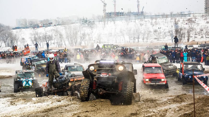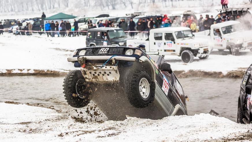 К финальному заезду подъём уже хорошо разбили и раскатали, поэтому гонка получилась жёсткой, скоростной и динамичной. Часть трассы проходила по речке, а часть — по промёрзшему грунту с кочками, ухабами и трамплинами. Машины буквально на глазах рассыпались и сходили с дистанции.