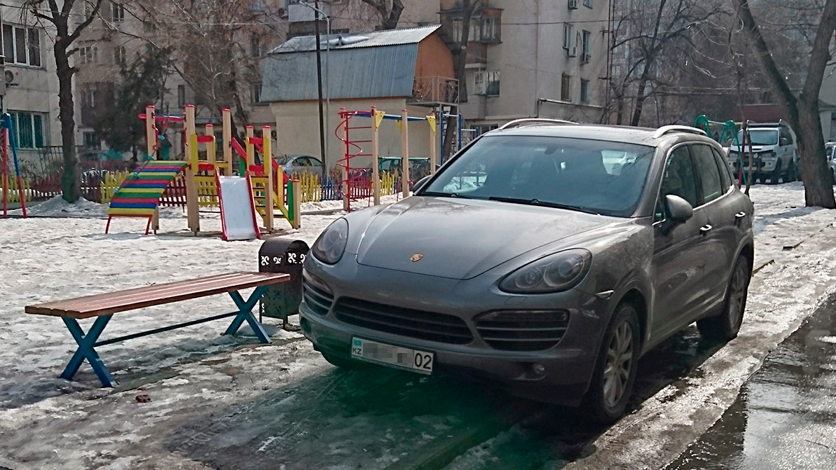 - Часть 2 — за нарушение правил остановки или стоянки на тротуаре, а также остановка или стоянка на клумбах, газонах, детской или спортивной площадке. Штраф 10 МРП, или 43 250 тенге.