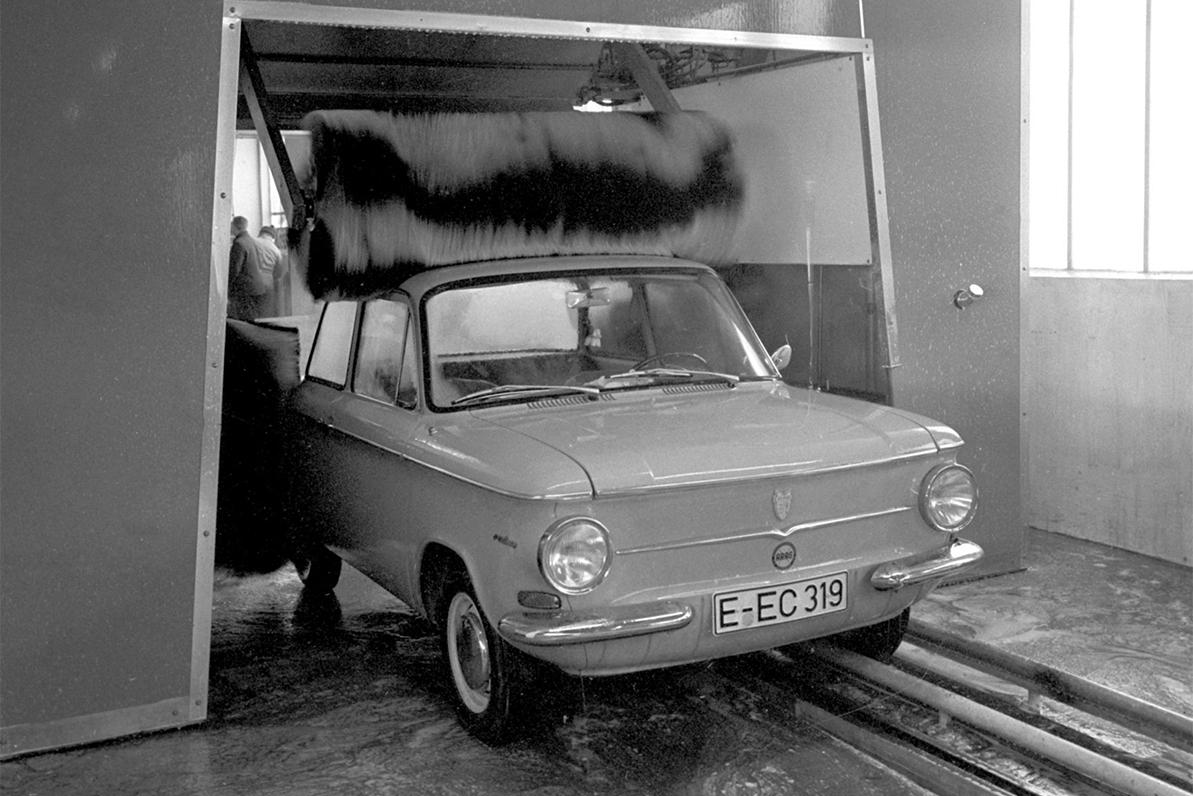 После войны мода на автомойки получила широкое распространение не только в США и Европе, но докатилась и до СССР. Большей частью моечные камеры предназначались не для обслуживания частников, а устанавливались на автомобильных заводах, в крупных таксопарках и промышленных базах. Тогда же автомойки окончательно приобрели знакомый формат с рециркуляцией очищенной воды и вращающимися тканевыми щётками-валиками. Вспомните сцену поединка Семён Семёныча с контрабандистами в гараже из «Бриллиантовой руки».