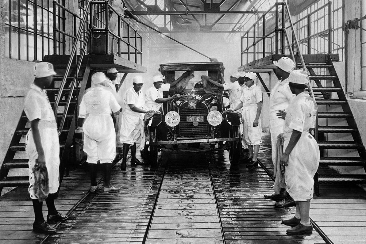 В двадцатые годы XX века автомобильные мойки уже вовсю действовали в Америке и ряде стран Старого Света. Моечный процесс был разделён между работниками по операциям: намыливание, ополаскивание, сушка, полировка бампера, фар и блестящих деталей декора, поэтому людей там трудилось немало.