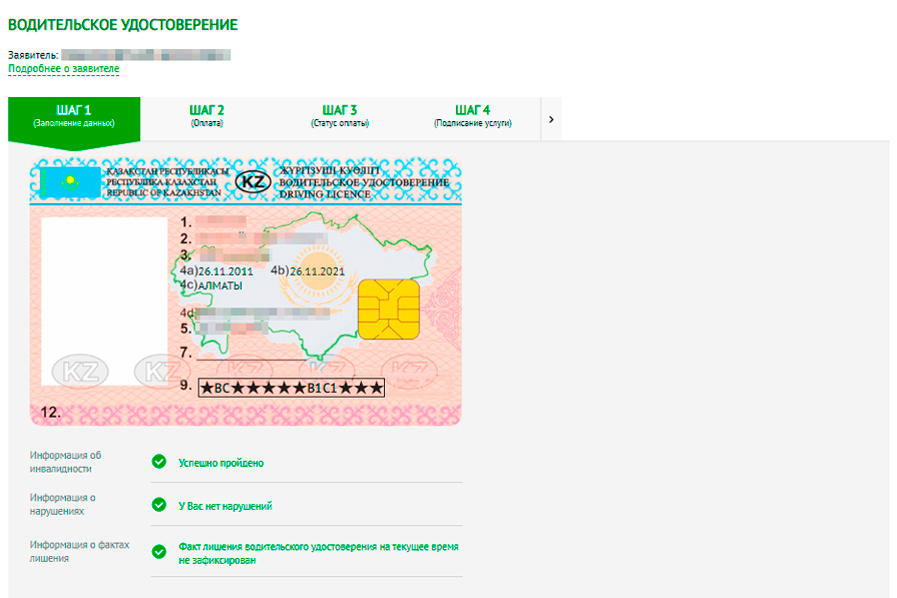 3. Сверьте данные заявки. Система сама проверит о наличие инвалидности, непогашенных штрафов и факте лишения водительских прав.