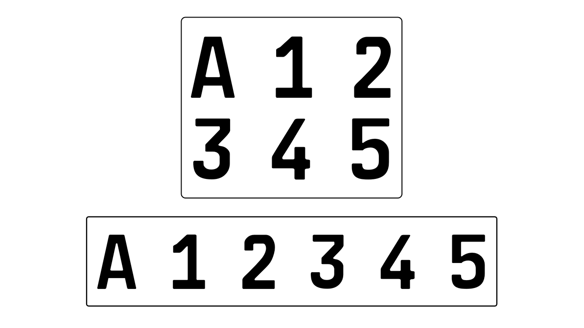 - 2-типтегі нөмірдің өлшемі: ені — кемінде 45 мм, ұзындығы — кемінде 186 мм, пропорция сақталуы керек;