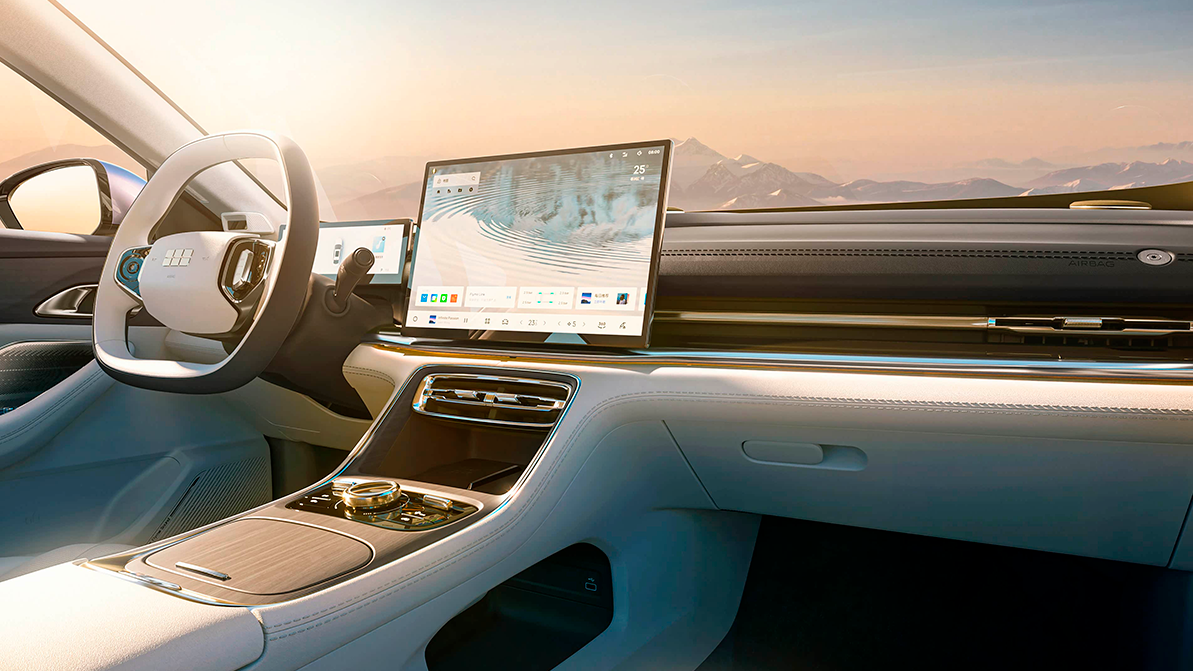 Электромобиль салонының дизайны мен жабдықтары гибридке өте ұқсас. Жабдықтар тізімінде 10.2 дюймдік цифрлық аспаптар панелі, 14.6 не 15.4 дюймдік сенсорлы планшет, айнала шолу камерасы, екі аймақты