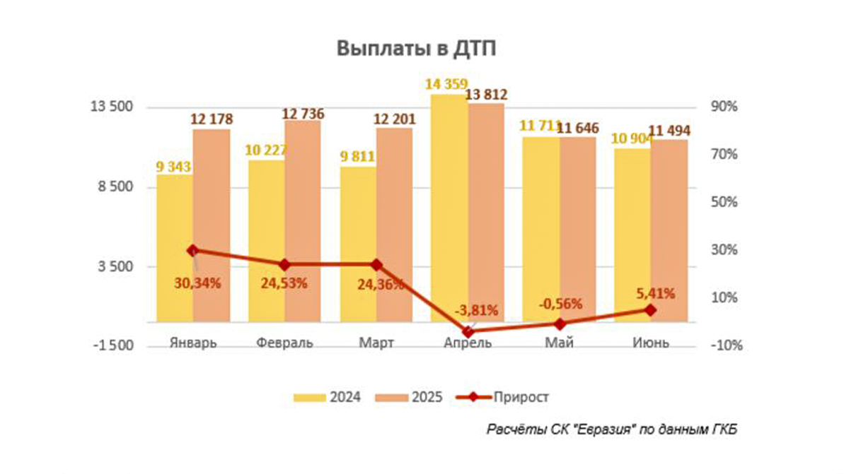 Мемлекеттік кредиттік бюро отандық сақтандыру компанияларының міндетті сақтандыру төлемдерінің саны негізінде 2025 жылдың алғашқы жартысында қанша апат болғанын жария етті. «Евразия» сақтандыру компаниясының сарапшылары хабарлағандай, биыл алты айда сақтандырушылар 74 мыңнан астам төлем жасаған, бұл былтырғы сәйкес кезеңмен салыстырғанда 11.6 % көп.