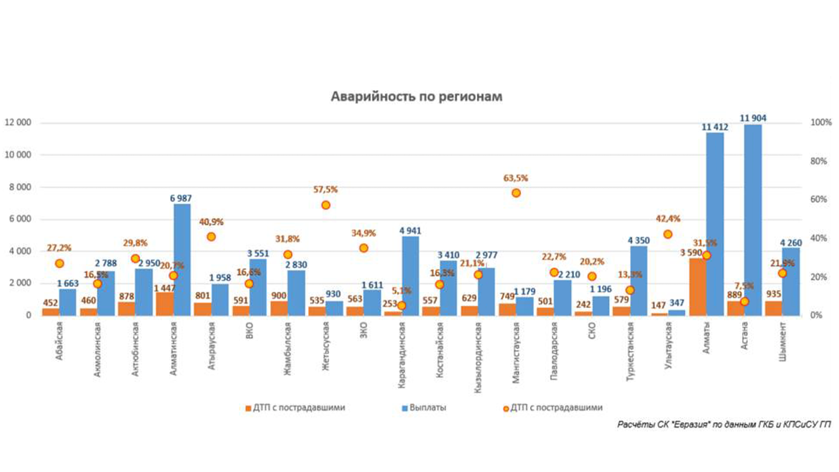Жалпы сақтандыру төлемінің саны және апат бойынша Астана мен Алматы көшбасшы. Биыл алты айда екі қалада сақтандырушылар 23 мың төлем жасады, бұл жалпы көлемнің