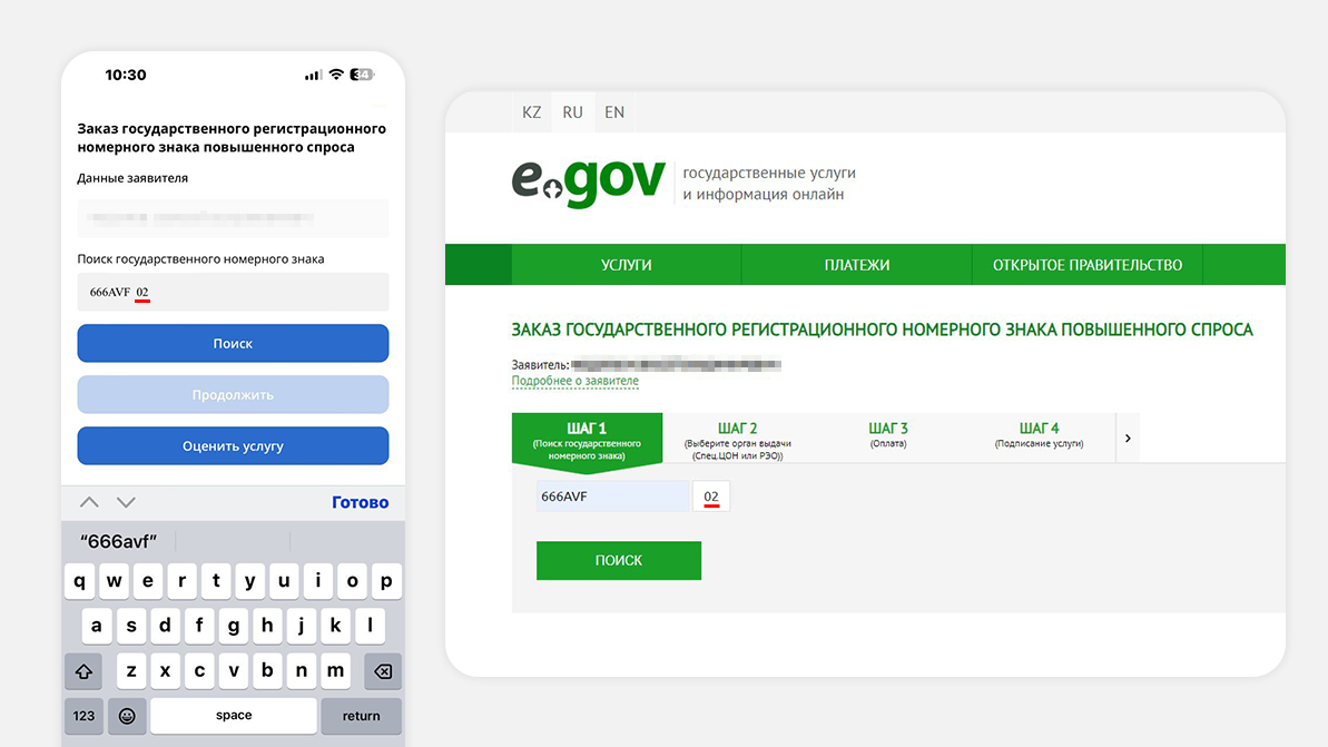 Редакция ішінде «тексеріс» бастамас бұрын біз де eGov Mobile арқылы нөмірге тапсырыс беруге тырыстық. Барлық пайдаланушыда ресми тіркелген өңір шықты. Сонда, Қарағанды тұрғыны 02 нөмірін қалай ресми сатып алған?