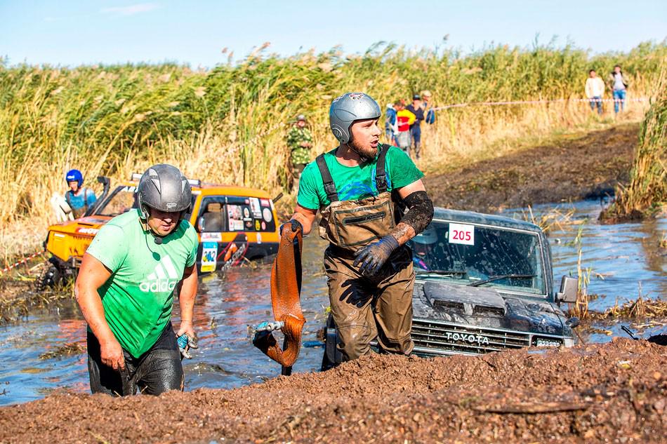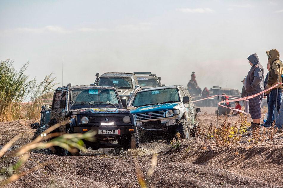 Второй день — кольцевая гонка, самая зрелищная часть «Капшагайской бахи». Зрители наслаждаются видом несущихся в облаке грязевых брызг внедорожников, увязающих, застревающих и буксующих в той же грязи