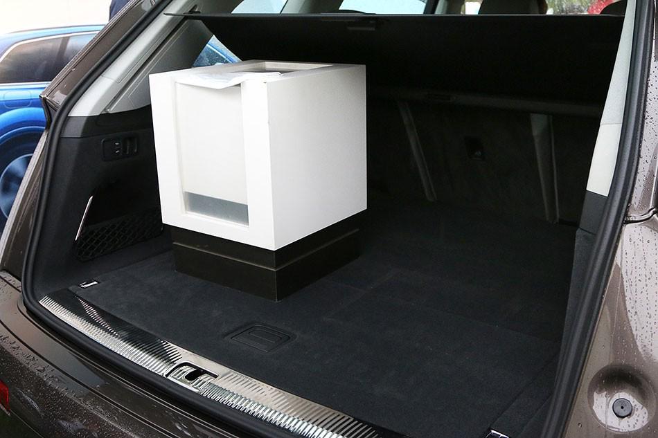 Что за короб в багажнике? Это стилизованная подставка под ценник к новому Q7. Так же, как и цифры в спецификации, он большой, да. Именно этот автомобиль 13 сентября стоил 26 147 376 тенге. Не знаем, как сейчас, ведь курс доллара и евро с того дня заметно приподнялся