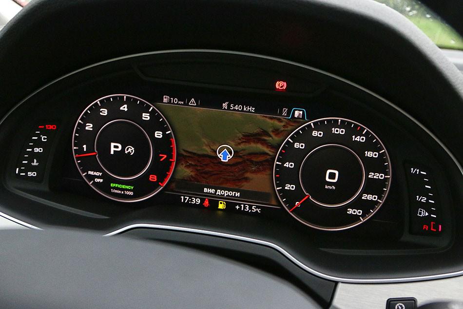 Под капотом представленной машины бензиновый турбированный 3-литровый TFSI. Его 333 силы разгоняют нелёгкий Q7 до сотни за 6.1 с