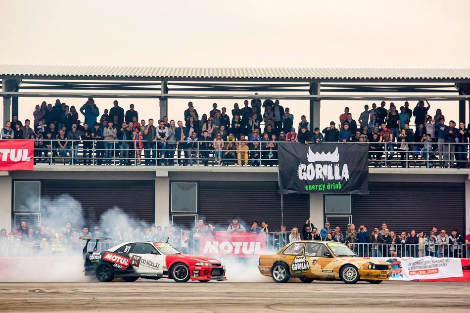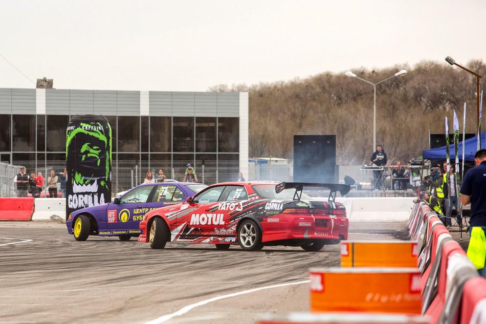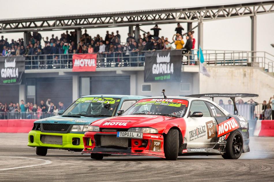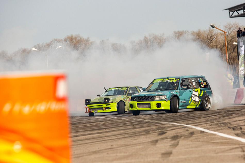 А последней парой в топ-16 оказались сокомандники из Астаны — чемпион прошлого года Георгий Колядинов на красном Nissan Skyline...