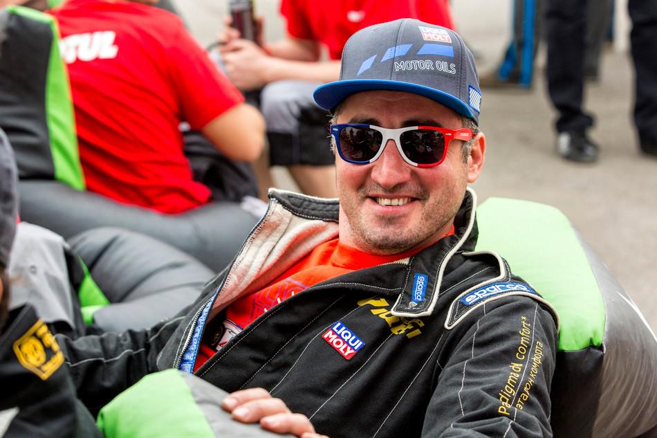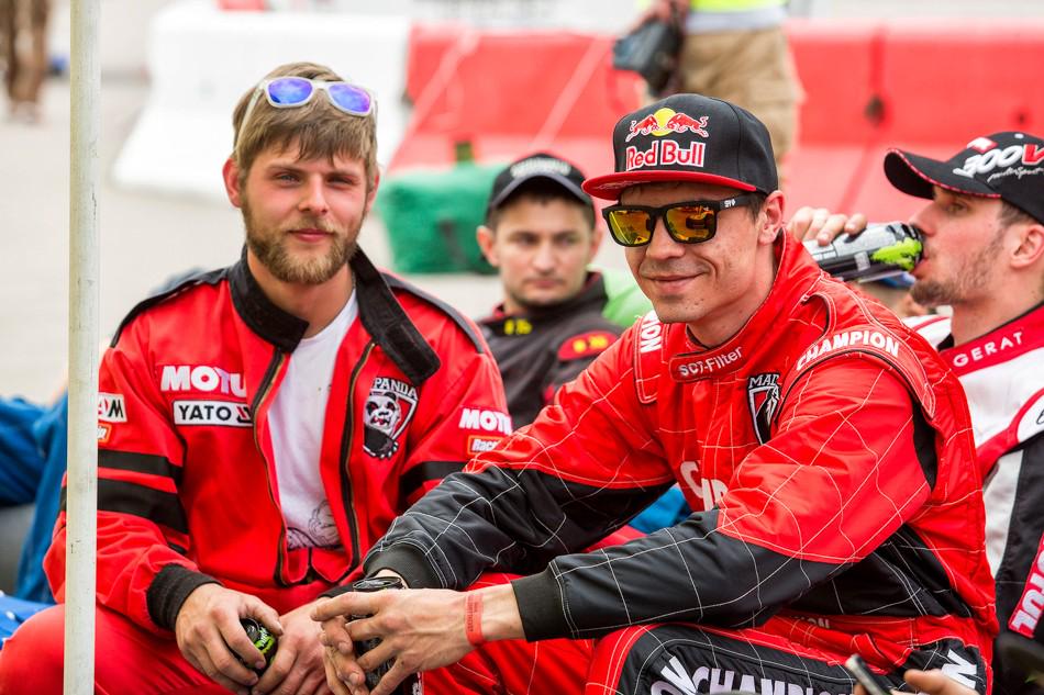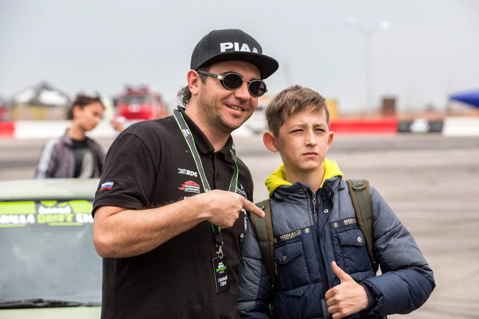 Пока пилоты слушали результаты квалы и наставления Дмитрия Семенюка перед парными заездами, публику развлекал Андрей Леонов. В этот момент он ещё не знал, что стал победителем в своём классе