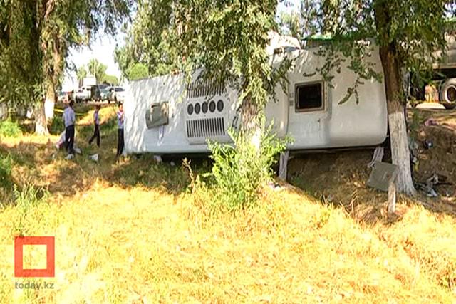 Более десяти человек пострадали в результате опрокидывания автобуса в Алматинской области субботним утром.