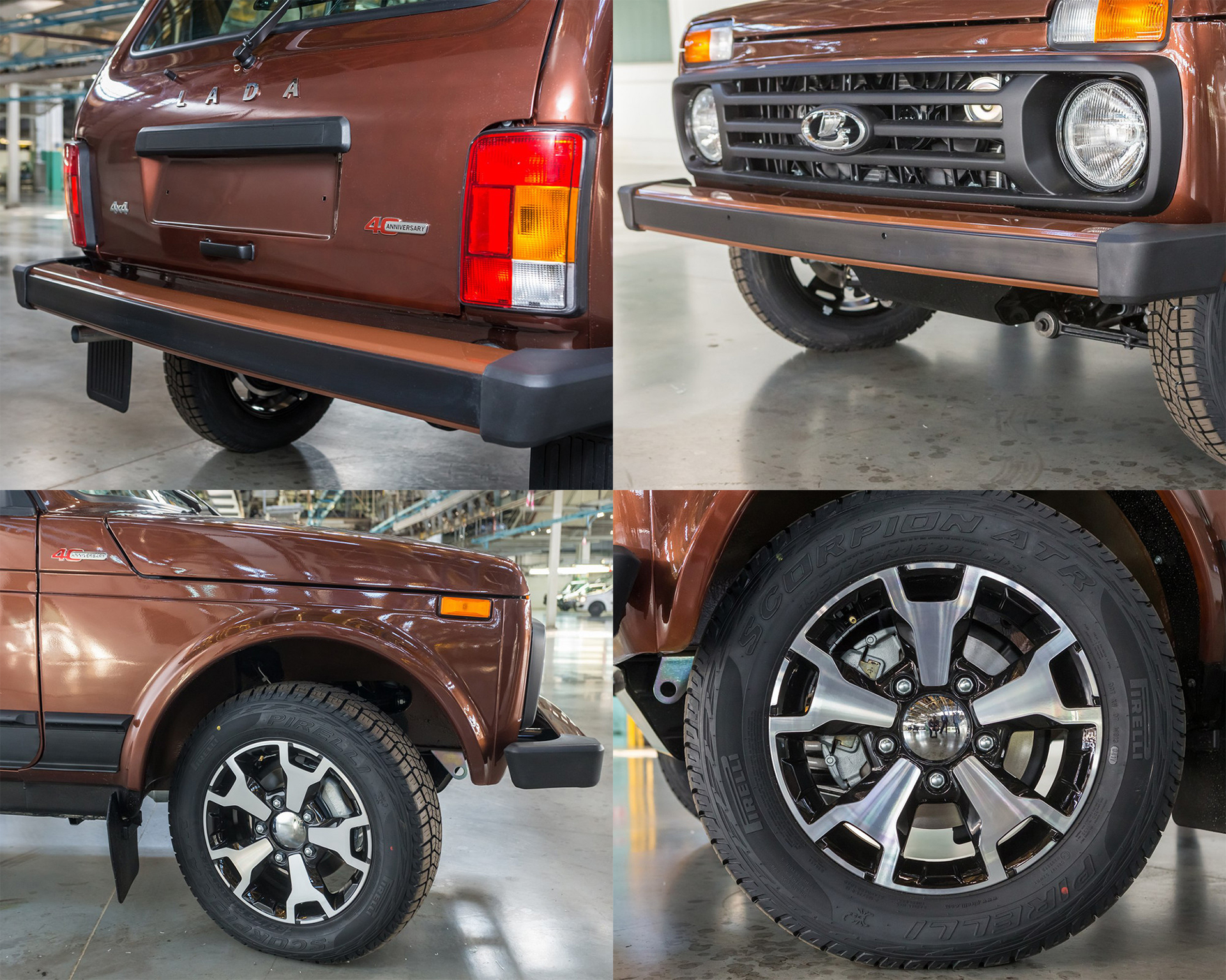 В честь 40-летнего юбилея «Нивы» в Тольятти решили выпустить особенную версию машины. Внешне она отличается лишь новым цветом, другими колёсами и шильдиками «40 Anniversary», на переднем крыле и крышке багажника.