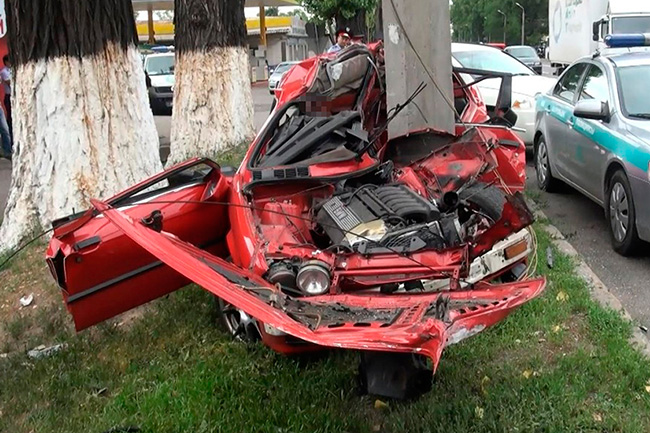 По словам очевидцев, автомобиль ехал с огромной скоростью. Затем, как говорят свидетели ДТП, красный BMW кинуло в правую сторону, машина пошла в занос и на полном ходу левой стороной влетела в фонарный столб.