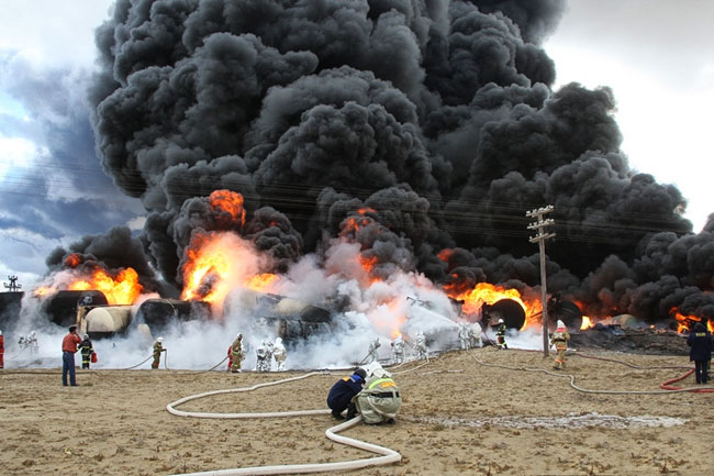 В Мунайлинском районном суде Мангистауской области водителя бензовоза Б. Сундетова, который допустил столкновение бензовоза с железнодорожным составом, в результате чего произошло опрокидывание цистерн с нефтью и последующее их возгорание, был признан виновным.