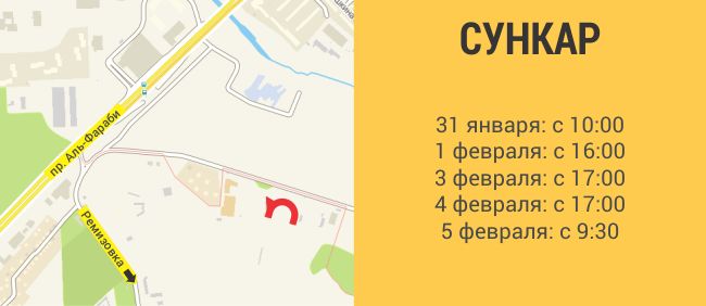 В окрестностях лыжных трамплинов «Сункар», что расположены немного южнее проспекта Аль-Фараби, проблемы с движением могут начаться с 31 января. В 10 часов утра там начнутся соревнования по прыжкам на лыжах с трамплина. Далее вплоть до 5 февраля состязания будут проводиться в послеобеденное время и до позднего вечера. 5 февраля лыжники начнут прыгать уже в 09:30. Последний этап соревнований в этот день стартует в 7 часов вечера.
