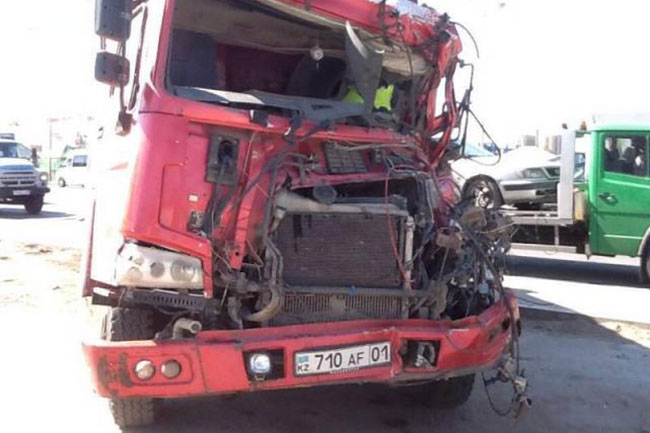 16 июня в 7 утра грузовой автомобиль марки HOWO, двигаясь по ул. Акжол, от ул. Пушкина в сторону ул. Досмухамедулы, в Астане, на перекрёстке допустил столкновение с таким же грузовиком.