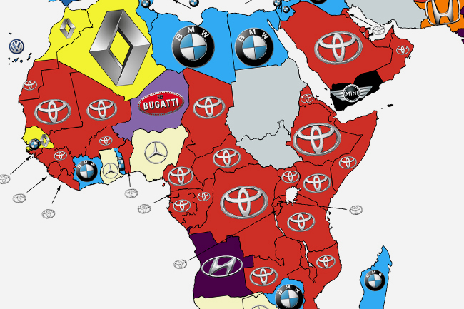 Лидером по поисковым запросам, конечно же, является Toyota. Японская марка крайне популярна в 74 странах.