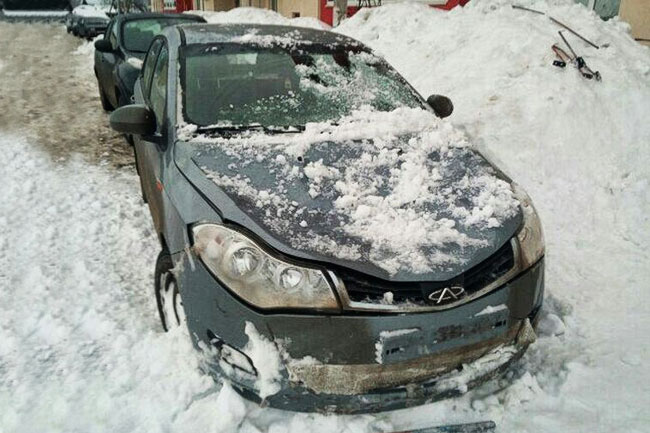 По имеющейся информации, снег упал с крыши многоквартирного дома, возле которого стояли автомобили. Пострадавший Lancer, скорее всего, уже восстановлению не подлежит. Машину сплющило и разорвало на части одновременно. Также частично пострадал рядом стоящий китайский Chery Bonus — часть снега угодила на капот, который в итоге помялся.